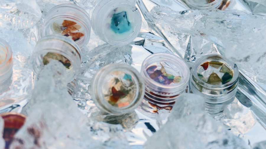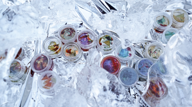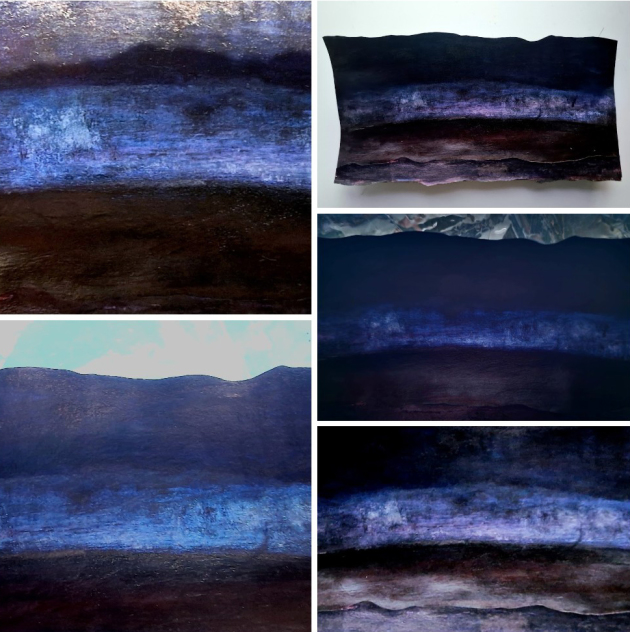 Precious Samples with a glow (clear glue, violin varnish, perl pigments)
